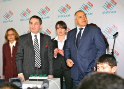 Sisecam CEO Ahmet Kirman (front left) together with Bulgarian Prime Minister Boyko Borisov (front right) at the opening of the fifth Sisecam manufacturing facility in Bulgaria's Targovishte. Photo by M3 Communications Group, Inc
