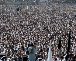 A grand congregation to celebrate promulgation of Shariah Nizam-e-Adl Regulation (SNAR), in Swat, Pakistan where Pakistani forces have been engaged in an operation against the Taliban. Photo by BGNES