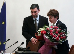 The Bulgarian Education Minister Daniel Vulchev (L) and Deputy Prime Minister in charge of EU funds Meglena Plugchieva (R) at a Ministries Council Meeting. Photo by Sofia Photo Agency