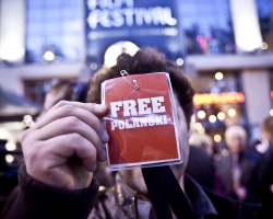 A man showing a "Free Polanski" sticker is waiting for the Filmfestival in Zurich, Switzerland, 27 September 2009. Photo by EPA/BGNES