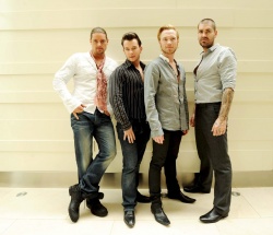 Irish boy band Boyzone members (L-R) Shane Lynch, Stephen Gately, Ronan Keating and Keith Duffy pose for photographs at the Hilton Hotel in Sydney, Australia, on 07 November 2008.