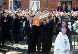Ronan Keating delivered the eulogy in front of mourners at St Laurence O'Toole's church, often breaking down in tears while Boyzone sang Westlife track In This Life during the service before helping to carry the coffin out of the church.