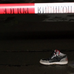 Gunenski's shoe fell out of the van as he was trying to resist his kidnappers. The police have sealed off the crime scene. Photo by BGNES