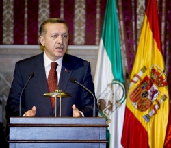 Shortly after receiving an award in Seville for his work in fostering intercultural relations, Turkish PM Recep Erdogan was attacked by a Syrian shoe-throwing protester. Photo by BGNES