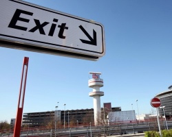 An exit road sign near the airport of Hamburg, Germany, 19 April 2010. Volcanic ashes from an eruption on Iceland continue to disrupt air traffic in many parts of Europe, air space remains closed. Photo by EPA/BGNES