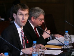 The IMF mission to Bulgaria ended on March 1, 2010; the head of the mission Bas Bakker is on the left. Photo by BGNES