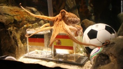 Sea Life staff help Paul make his prediction by lowering two boxes of food into his tank, one carrying a German flag and the other bearing that of their opponents. The case he opens first is adjudged to be his predicted winner.