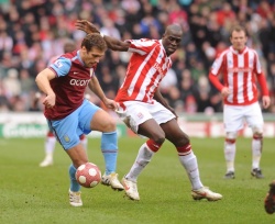 ston Villa's Stiliyan Petrov (L) takes the ball from Stoke City's Mamady Sidibe during English Barclays Premier League soccer match between Stoke City FC and Aston Villa FC, at the Britannia Stadium, Stoke-on-Trent, Britain, 13 March 2010. Photo by EPA