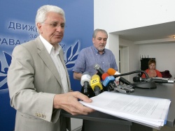 The leadership of Bulgaria's ethnic Turkish party Movement for Rights and Freedoms is challenging the results of the summer 2009 general elections in Bulgaria. The picture shows Hristo Biserov (l) and Lyutvi Mestan. Photo by BGNES