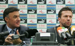 German legend Lothar Matthaeus (r), signed his contract with BulgariaThursday afternoon and was presented to the media by the President of the Bulgarian Football Union, Borislav Mihailov (l). Photo by BGNES