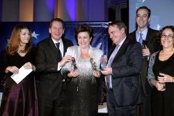 Bulgaria's Georgieva (middle) with other Europeans of the Year who won the awards of European Voice during the ceremony at the Brussels Bourse, Nov 30, 2010. Photo by EC