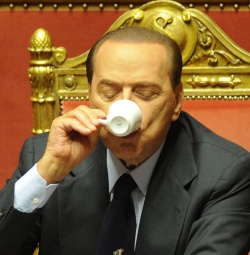 Italian Premier Silvio Berlusconi enjoying a coffee in the Senate today December 14 2010 during a confidence vote which the government won by 162 votes to 135.Photo by BGNES