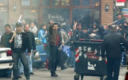 Nationalists and residents of the district of Aghios Panteleimonas, a mainly immigrant neighbourhood, near central Athens, clash with riot police while trying to stop an anti-racism rally being organized by labor, student and immigrants, Jan 15. EPA/BGNES