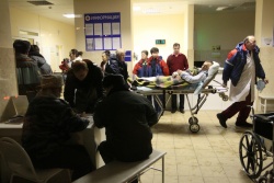 Medics transport a Domodedovo bomb explosion victim from a local hospital to an ambulance heading for Moscow. Photo by EPA/BGNES