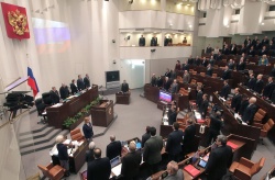 Members of the upper house of the Russian parliament, the Federation Council, listen to state anthem during a session in Moscow, Russia, 26 January 2011. EPA/BGNES
