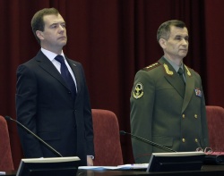 Russian President Dmitry Medvedev (L) and Interior Minister Rashid Nurgaliyev (R). Photo by EPA/BGNES