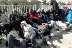 Immigrants wait to board a ferry on the island of Lampedusa, Italy. Photo by EPA/BGNES
