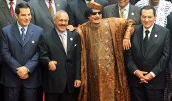 Tunisia's Ben Ali (first left) and Egypt's Mubarak (right right) are already out of the picture swept by popular revolutions. Libya's Gaddafi (second right) and Yemen's Ali Abdullah Saleh (second left) appear to be next in line to be toppled. EPA/BGNES
