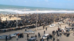A photograph made available on 24 February 2011, shows Libyans performing prayers as they are gathered in a protest on the seaside in Benghazi, Libya, 21 February 2011.