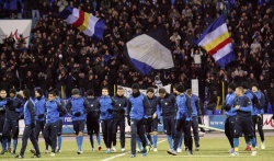 Levski supporters cheer their team Thursday during their last practice for the derby against arch-rivals CSKA Saturday. Photo by BGNES