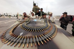 Libyans belonging to the anti-government forces in Brega prepare before advancing towards Ras Lanuf, eastern Libya, 04 March 2011. EPA/BGNES