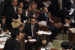 Prime Minister, Naoto Kan, feels the earthquake during the session in the Japanese Parliament. Photo by EPA/BGNES