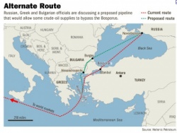 Bulgaria, Greece and Russia agreed to build the pipeline between Burgas and Alexandroupolis, taking Caspian oil to the Mediterranean skirting the congested Bosphorus, in 2007 after more than a decade of intermittent talks.