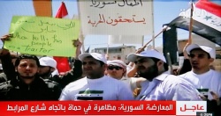 A TV grab taken from Al Arabiya channel on 29 April 2011, shows an anti-government demonstration in the city of Hama, Syria. EPA/BGNES