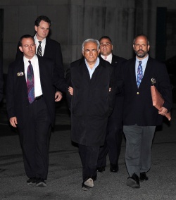 4 IMF director general Dominique Strauss-Kahn (C) walks out of a New York City Police station after being arrested for allegedly sexually attacking a hotel maid in New York, New York, USA, on 15 May 2011. Photo by EPA/BGNES