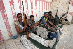 Libyan rebels rest on the outskirts of Bani Walid, southeast of Tripoli, Libya, 17 September 2011. EPA/BGNES