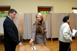 A Latvian woman casts her ballot during early parliamentary elections in Amata, Latvia, 17 September 2011. EPA/BGNES