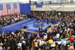 U.S. President Barack Obama speaks at a town hall event at The University of New Orleans in New Orleans, Louisiana, USA 15 October, 2009. EPA/BGNES