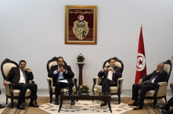 Tunisian FM Rafik Abdessalem (L), Qatari PM Sheikh Hamad Bin Jassim Bin Jabr Al-Thani (2L), Omani FM Yousuf bin Alawi (R), Morocco FM Saad Eddine Othmani (2R) meet ahead of a conference of the so-called Friends of Syria group, in Tunis, Tunisia, 23 Feb. E