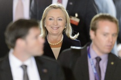 Hillary Rodham Clinton (C), Secretary of State of the United States of America, arrives for a meeting of the Action Group for Syria at the European headquarters of the United Nations in Geneva, Switzerland, 30 June 2012. Photo by EPA/BGNES