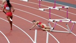 Bulgaria's Vanya Stambolova has suffered three abrasions as she stumbled over a hurdle in the women's 400m hurdles heats.