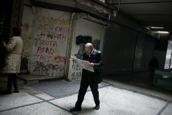 A man reads a newspaper as he walks inside an arcade near the main Omonoia square in Athens, Greece, 05 December 2012 EPA/BGNES