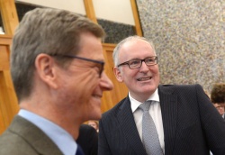 German Foreign Minister Guido Westerwelle (L) and his Dutch counterpart Frans Timmermans arrive for the opening of the German-Dutch Forum 2012 at the German Foreign Office in Berlin, Germany, 27 November 2012. EPA/BGNES
