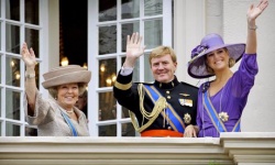 The Dutch queen, Beatrix, her son, Crown Prince Willem-Alexander and daughter-in-law, Princess M?xima, waving to the crowd from the balcony of Palace Noordeinde in The Hague. Photo by EPA