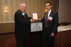 Bulgarian student Boris Georgiev (R) receives "Best Student Paper" award for his paper on economics, at an official ceremony in Philadelphia, US. Photo by International Atlantic Economic Society