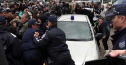 The latest incident happened around 3 pm as riot police officers tried to disperse the crowd gathered near the rear entrance of the Parliament building in order to make way for ten police vehicles to enter the security zone, obviously in an attempt to guard lawmakers leaving the building.