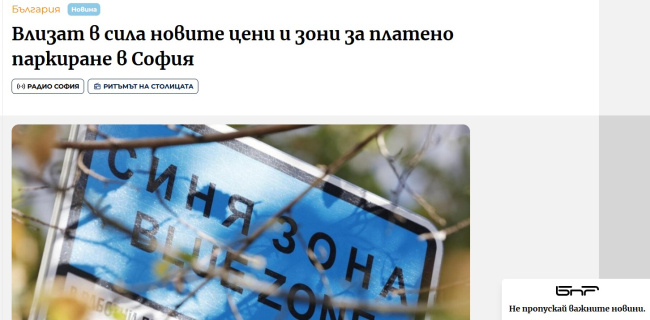 Some media outlets, including state media BNR and BNT, claimed that paid parking in Sofia would double in price and expand to additional neighborhoods. According to those reports, the blue zone would extend beyond the city center to areas including Macedonia Square, Russian Monument Square, Kriva Reka, Ivan Vazov, the lower part of Lozenets, Yavorov, and sections of Oborishte Street. The green zone was said to gradually expand to neighborhoods such as Banishora, Lagera, Reduta, Geo Milev, Iztok, Izgrev, Dianabad, part of Studentski Grad, and part of Poduyane.