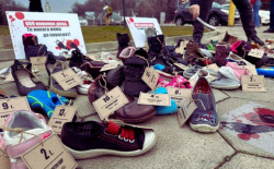 Supporters of “Democrats for a Strong Bulgaria” (DSB) commemorated the children killed during the ongoing war in Ukraine by arranging a display of children’s shoes in front of the Russian Embassy in Sofia. Each pair of shoes was accompanied by labels indicating the ages of the victims from cities including Poltava, Kyiv, Kramatorsk, Zaporizhzhia, Kharkiv, Kryvyi Rih, and Odesa, highlighting the impact of missile strikes, drone attacks, and artillery shelling. Posters alongside the display bore the inscription, “669 innocent children. They will never grow up,” emphasizing the human toll of the conflict.